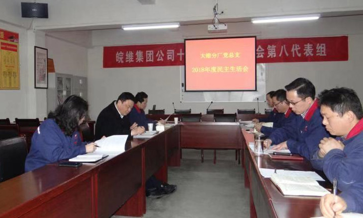 2月21日14:00,大维分厂导班子召开2018年度民主生活会,集团公司党委书记、董事长吴福胜,股份公司总经理助理唐成宏,党委工作部部长许玉萍参加会议。