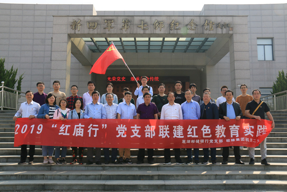 为进步增强党组织活力,5月12日,机关二支部与邮储银行巢湖支行党支部开展结对子联谊共建,两个党支部行29人赴无为县红庙镇开展“寻访红色印迹,传承强国之志”爱国主义教育实践。