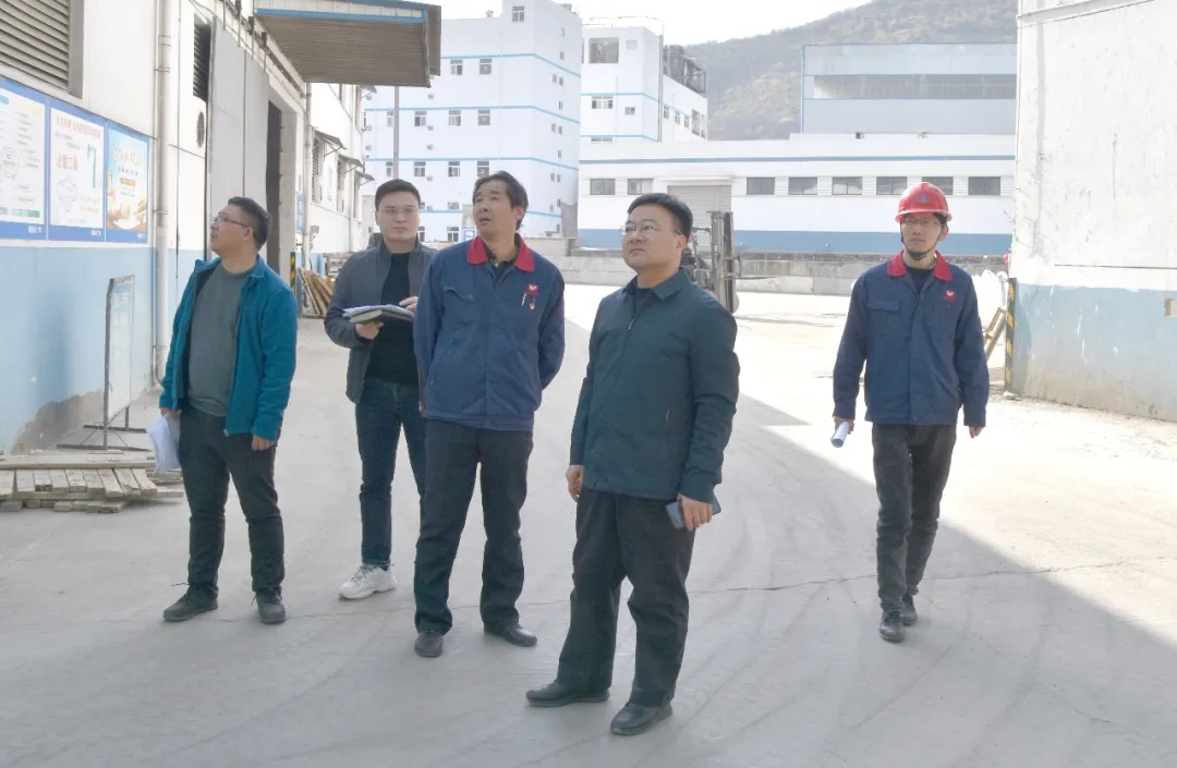 吴明哲一行先后前往研发大楼、PVB二期、偏光片、PVB树脂、差别化聚酯切片等项目建设现场,详细了解项目投资、建设进度、建成后预计效益等。