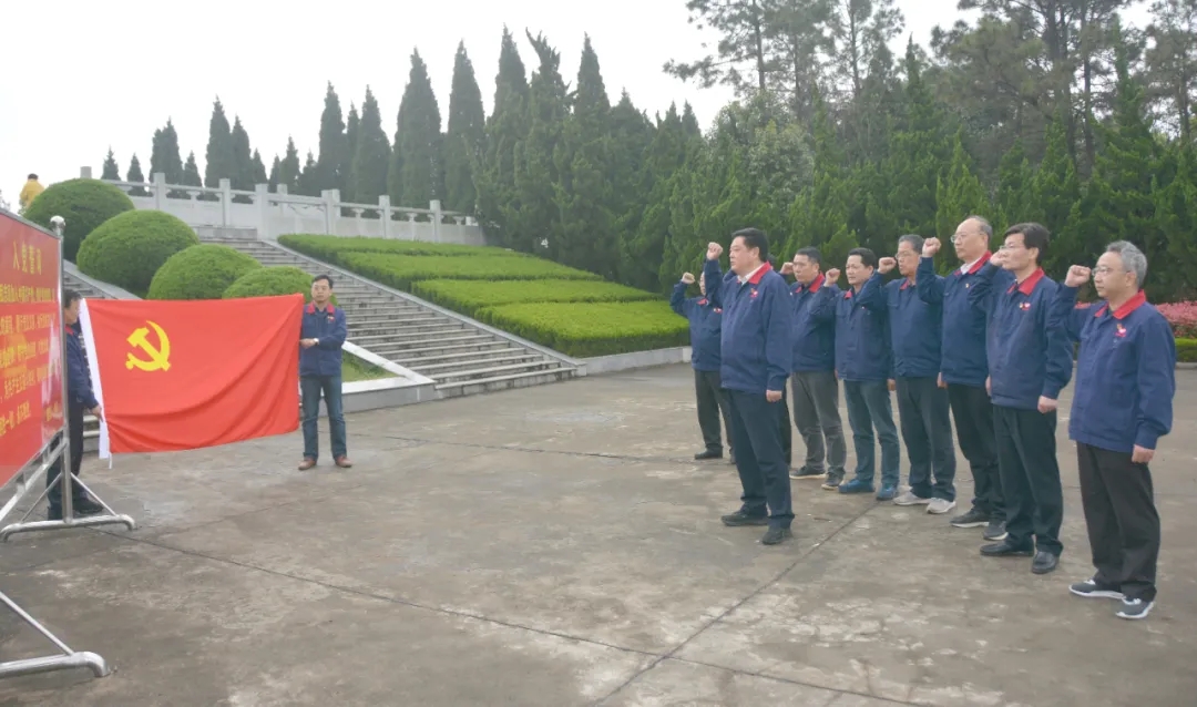 礼后,吴福胜带领班子成员,以饱含深情的语调,面对党旗举起右拳重温了入党誓词。