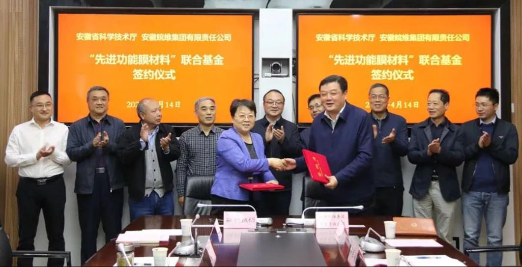4月14日下午,安徽省科学技术厅与永利yl23411集团签署“先进功能膜材料”联合基金协议,省科技厅厅长罗平,厅党组成员、副厅长姚群,集团公司党委书记、董事长吴福胜,副总工程师柳巨澜等出席签约仪式。