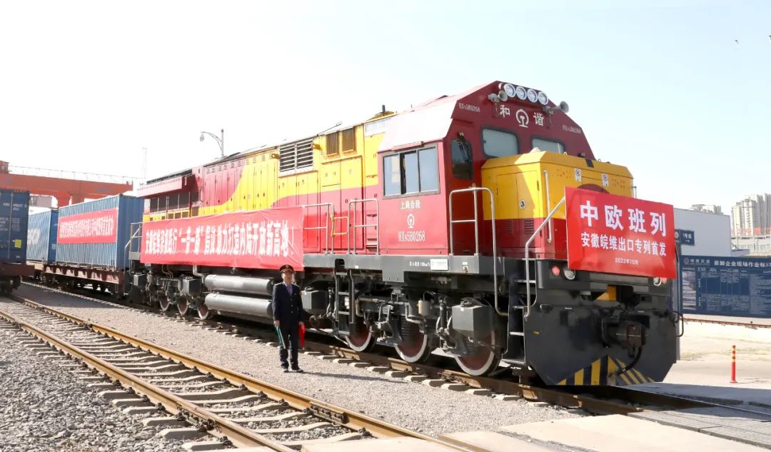 10月19日上午10时许,随着悠长的汽笛声响起,满载100个标准箱的首辆“安徽皖维”定制中欧班列从合肥北站缓缓启程,沿着“一带一路”,经二连浩特口岸出境,预计12天时间将一千多吨皖维PVA、可再分散性胶粉,送往欧洲地区。