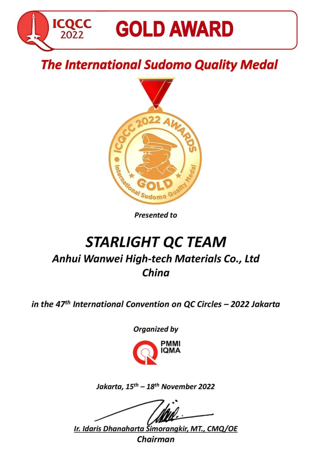 近日,第47届国际质量管理小组(ICQCC)大赛在印尼首都雅加达召开。来自全球国家和地区的800个代表队参与成果发表和交流,公司有机分厂启明星QC小组的成果《提高膜级PVA的优级品率》在激烈竞争中脱颖而出,荣获最高奖项—金奖荣誉。