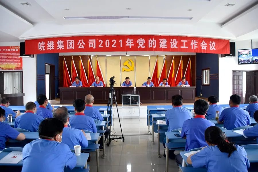 6月4日下午,公司2021年党的建设工作会议在雄壮的国歌声中拉开帷幕。会议的主要任务是:以习近平新时代中国特色社会主义思想为指导,深入学习贯彻党的十九大和十九届二中、三中、四中、五中全会精神,全面落实集团公司十九届三次职代会精神,回顾2020年和“十三五”集团党建工作,研究部署2021年企业党的建设各项任务,动员各级党组织和广大党员干部职工,围绕2021年集团各项目标任务,齐心协力,奋力拼搏,夺取生产经营目标任务全面胜利,为省国资委提出的“一跨两冲”目标作出皖维贡献。