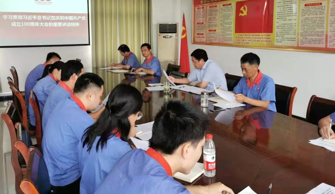 7月13日下午,花山党支部第一党小组召开会议,深入学习习近平总书记在庆祝中国共产党成立100周年大会以及在“七一勋章”颁授仪式上的重要讲话精神。集团公司党委书记、董事长吴福胜以普通党员身份参加专题学习会。